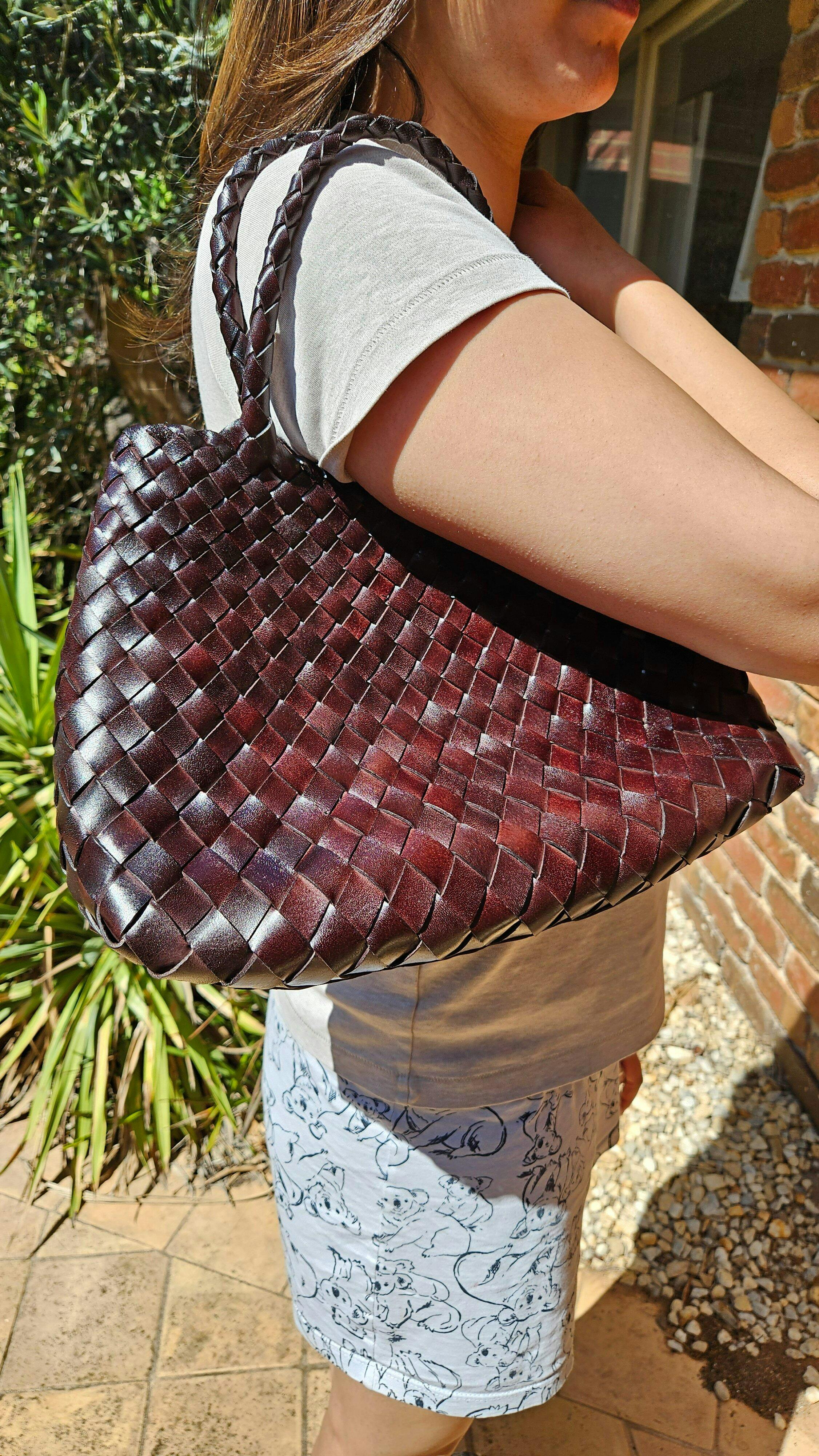 Introducing the Patina Cedar, a luxurious handwoven leather basket bag in stunning cedar brown. Each bag is meticulously handcrafted with vegetable tanned leather, ensuring both durability and a uniquely beautiful patina over time. Elevate your style with this exclusive and sophisticated piece.